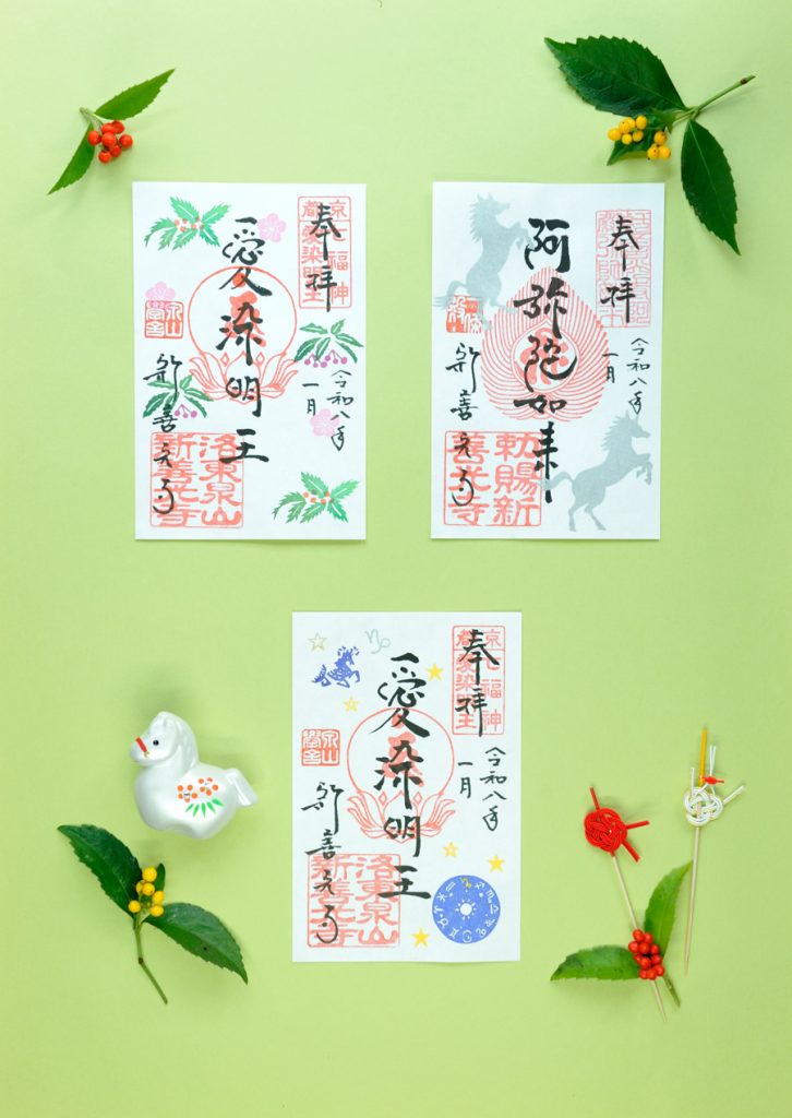 なお、昨年後半から新善光寺の御朱印を毎月集めていただいている方のために、新バージョンの御朱印に加えて、これまでのデザインの愛染明王さまの御朱印を書置きでご用意しています。