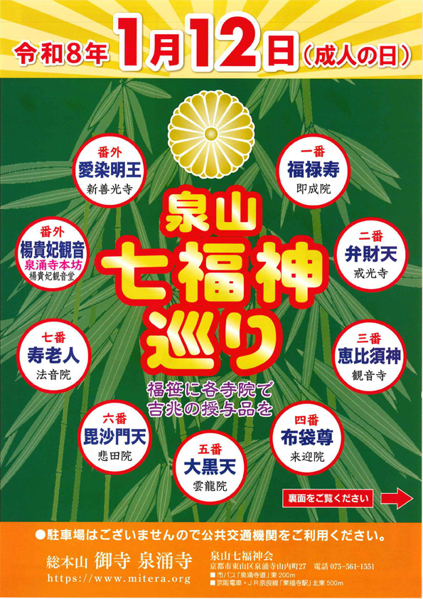 すでに泉涌寺のポスターでご案内していますが、令和8年の泉山七福神巡りをご案内します。